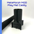 The MOD Playmat Holster is a sleek, 3D-printed storage solution designed to hold your Magic: The Gathering (or other TCG) playmat vertically. It attaches directly to your MetaMorph Deck Box or Deck Box Caddy using the Metamorph Rail System, giving you modular, portable storage that frees up precious table space during gameplay.